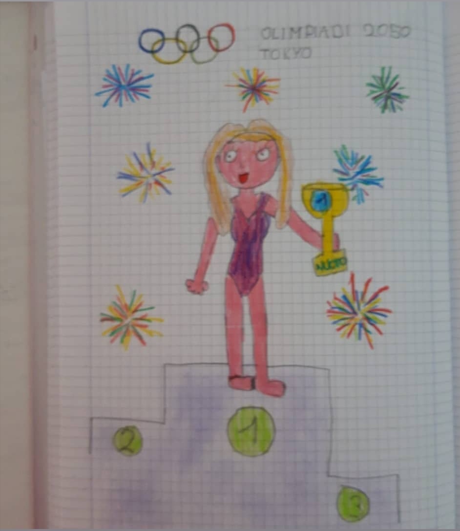 La quarta ed ultima tappa della challenge è stata “Disegnaci la visione del mondo che hai ora”, presentata dal writer Feb, che in pochi minuti ha costruito un’opera di colore e di senso. Tra tutti i partecipanti hanno trionfato due nuove leve, due bambini: Matthew Torchiana e Diletta Oliva, che sono arrivati a noi tramite genitori e zii. Matthew ha disegnato il mare con i pesci, un enorme sole e una nave dei pirati, spiegando l’importanza della natura e della libertà di solcare il mare della vita. Diletta ha ritratto se stessa in veste di nuotatrice, immaginandosi fra qualche anno sul podio olimpico, celebrando la forza dei sogni e dello sport.